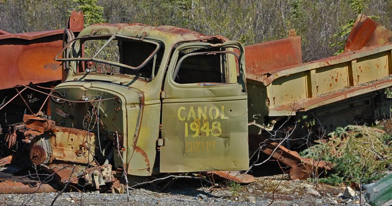 Route Update: I didn’t have time to grab screenshots of the new GPS route, but I recently rediscovered the old Canol Road, stretching from Johnson’s Crossing to the NWT Border via Ross River. Originally constructed to serve an oil pipeline stretching all the way to Norman Wells in WWII, the road has significantly deteriorated since being abandoned shortly after construction. Because of the speed it was abandoned, the road is a living museum of old workshops, pump houses, and construction vehicles that were left to decay in the sub-Arctic wilderness.