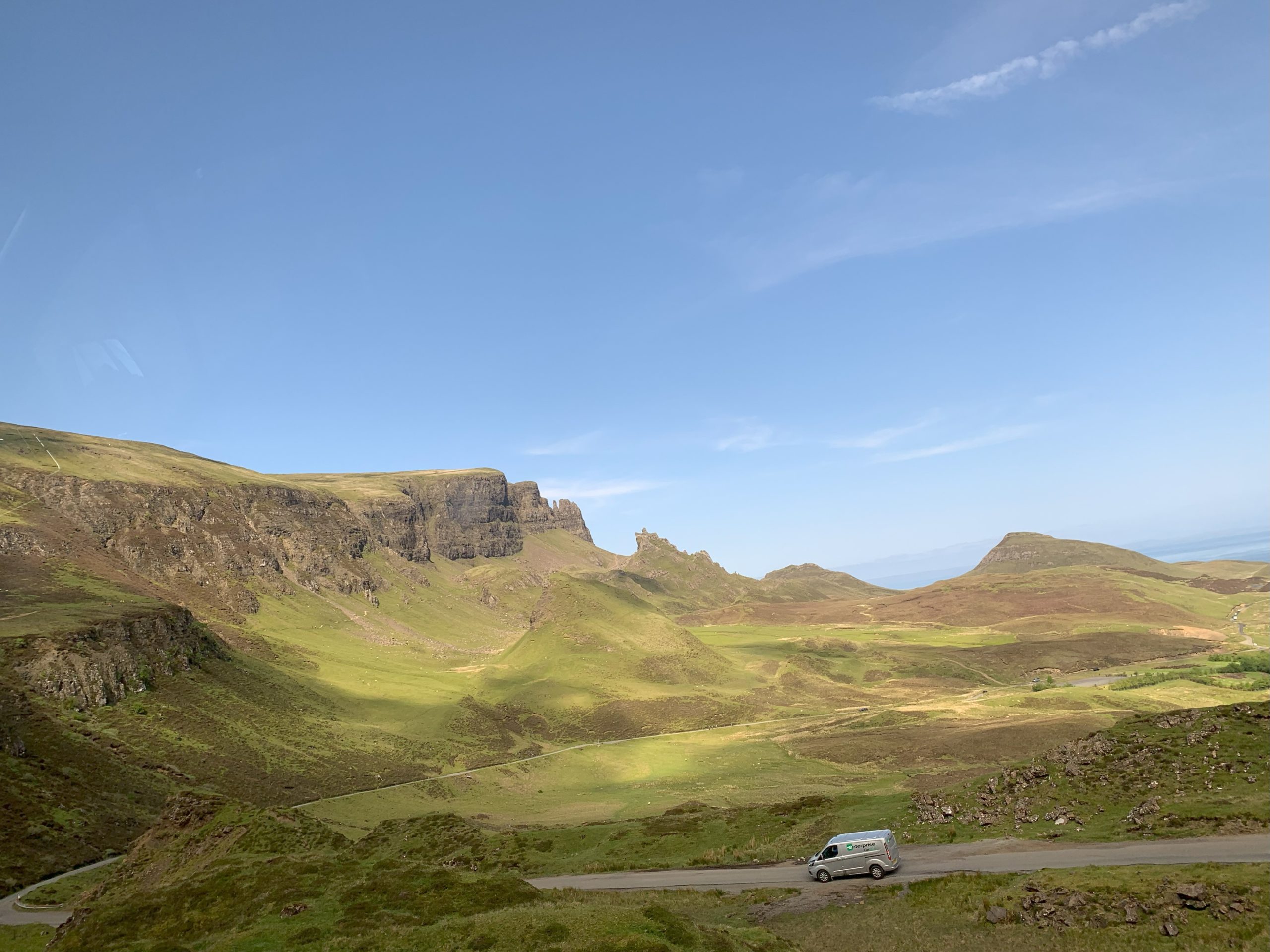 We had booked a private tour of The Isle of Skye for the Monday. Our tour guide was great and put together a route that took us through Loch Ness, Urquhart Castle, and Eilean Donan Castle before crossing Skye Bridge to the Isle. Our tour went up the eastern coast of the isle and we had lunch in Portree before driving along the stunning coastal roads and stopping for a bit of walking at The Quiraing and the Fairy Glen. The day in the van was a great way to get used to driving on the left side of the road and the tight, twisting highlands roads before taking on the NC500 the next day.