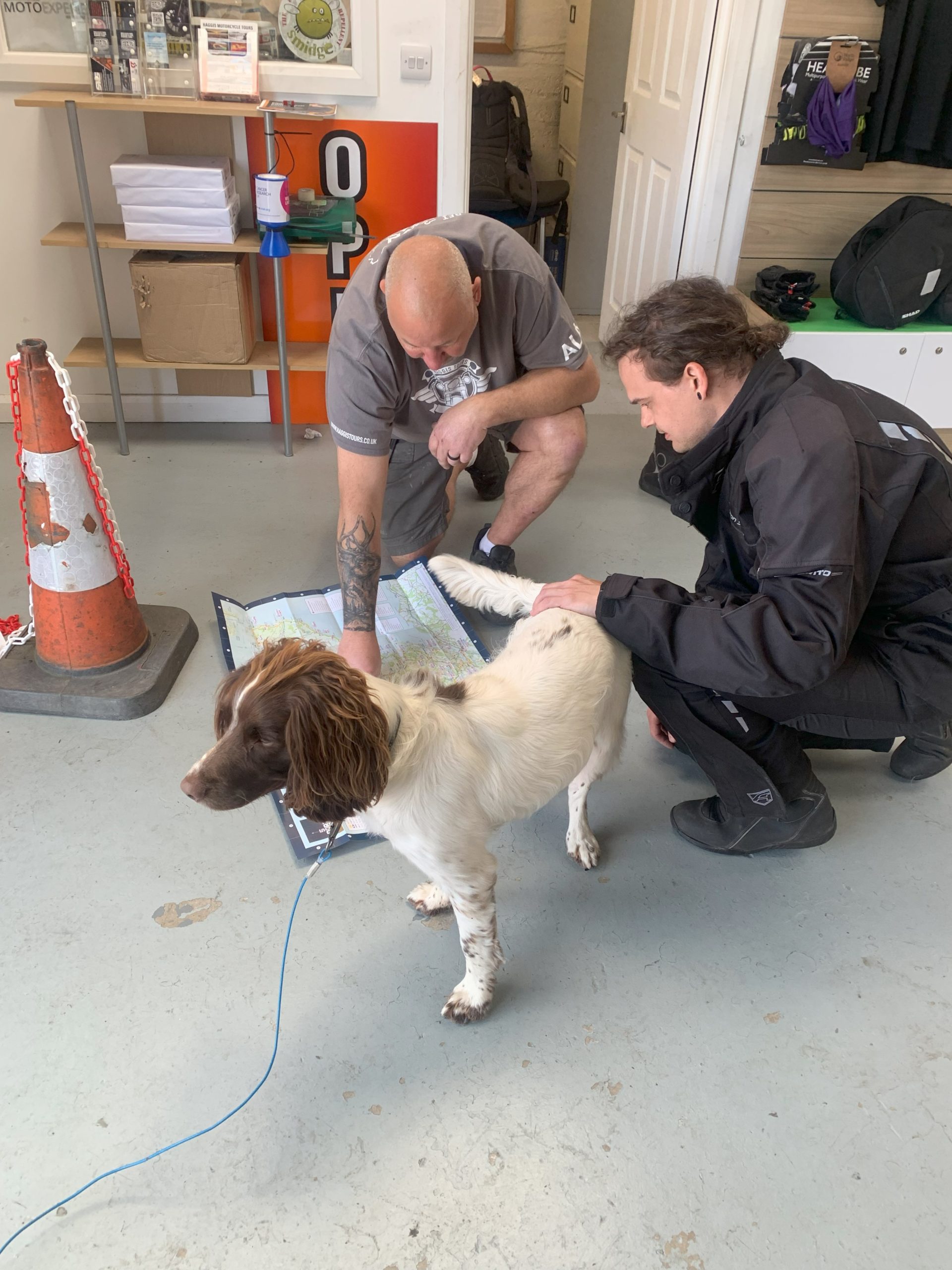 On Tuesday, we grabbed a cab and headed across town to pick up our rented BMW R1200GS for two days on the NC500. We found the Keith, the manager of the hire company, and his pup Winston waiting for us with a bike prepped. Keith got us sorted with gear (not great quality, but it beat dragging our gear all over the UK) and gave us some advice on the route before we loaded up the bike and got the RAM mounts set up for navigation.