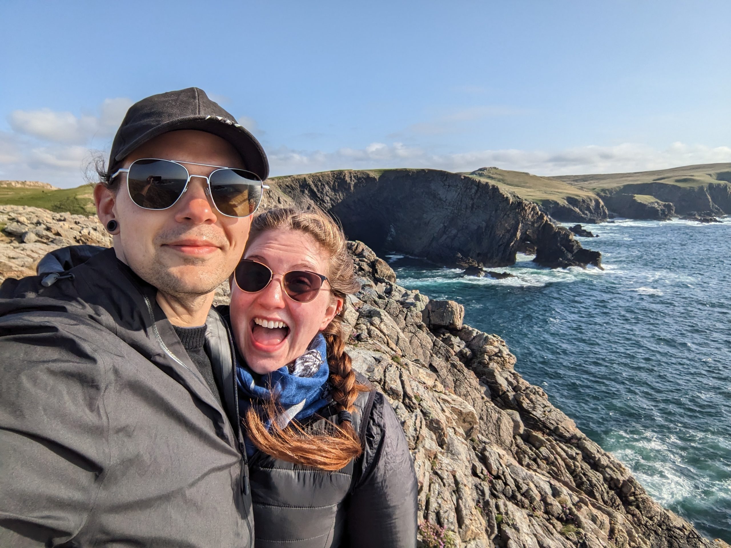 The next day we had our morning coffee with the sheep while sitting on the rocks looking out over the ocean and got back underway. The roads got narrower quickly, and we spent most of the day on single-lane back roads where opposing traffic had to pull over to make room. In one valley, we’d pulled over near a crumbled foundation to take in the views and Tori enjoyed fantasizing about how our Scottish property could be laid out when we rebuilt it.