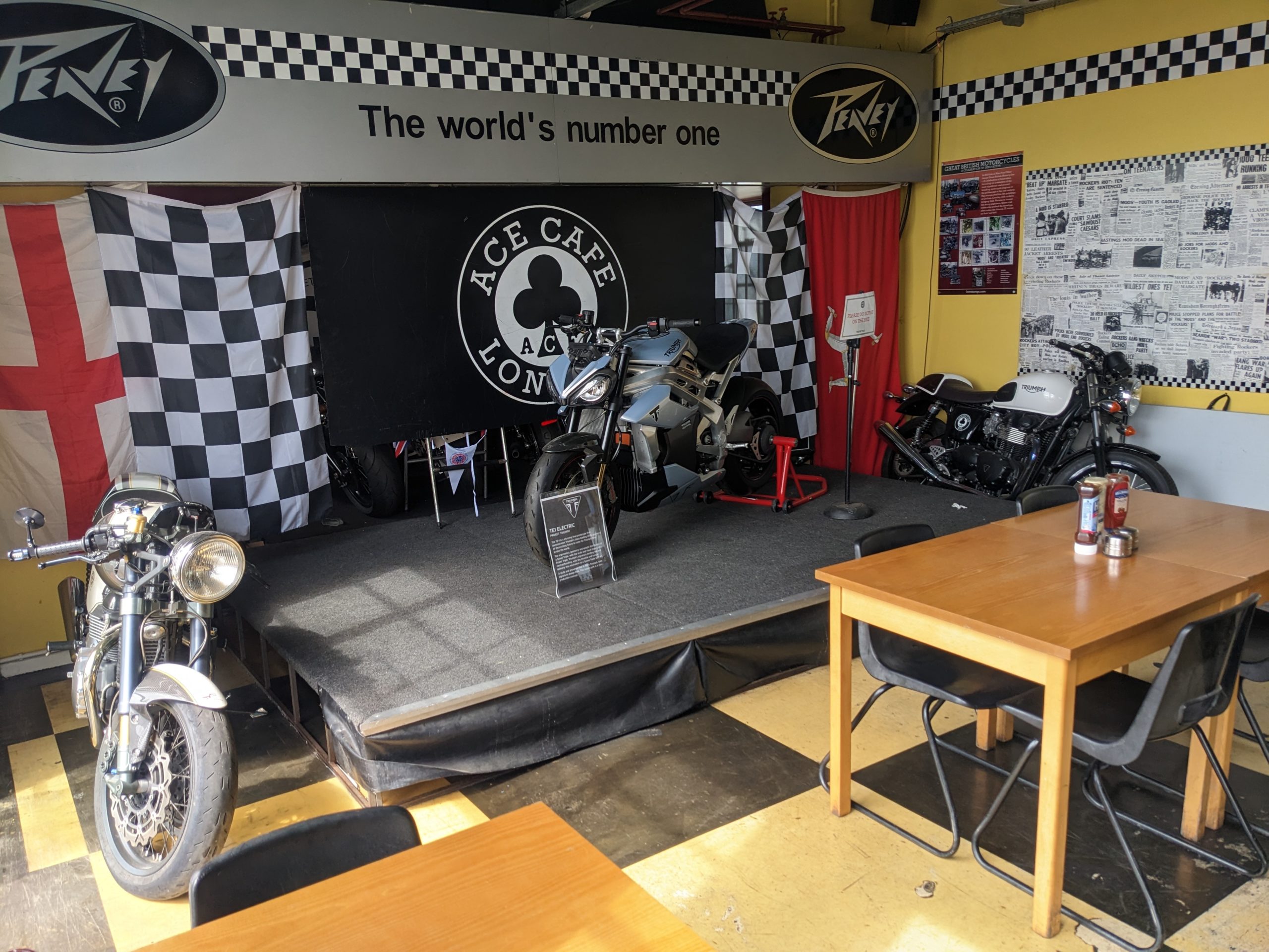 I had a romantic notion of a sleeper train being a charming and relaxing way to get back to London compared to a plane — I was incorrect. The tiny, stuffy cabin we had definitely wasn’t conducive to a good night’s sleep, but the views through the window and general convenience of the process made it worth trying. When we got back to London we killed some time at a coffee shop before heading to the famous Ace Cafe for Full English breakfast. It was pretty quiet on a Friday morning, but the displays of British motorcycle history were cool, as was the prototype Triumph electric bike sitting center stage.