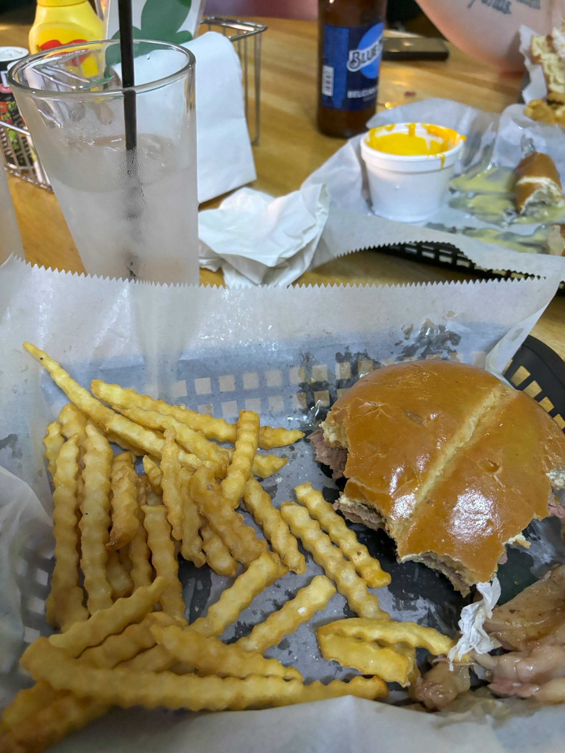 The last stretch from Chicago to Sandwich took us off the interstate and across miles of cornfields until we arrived at our final Sandwich of the Sandwich Quest. Sandwich, IL is perhaps slightly more substantial than NH, but it’s basically a one-street farming town in rural Illinois. After we unloaded the bike and locked up the bed of the truck, we wandered around a little antique store (with some surprisingly good jewelry) and had our mandatory sandwiches at one of the local bars. There was a Sandwich Opera House, but it had a single show listed for 2024 (a comedian in August). The streets were basically dead for being a warm, summer night and it was kind of an unceremonious end to our quest (at least until we hit the islands).