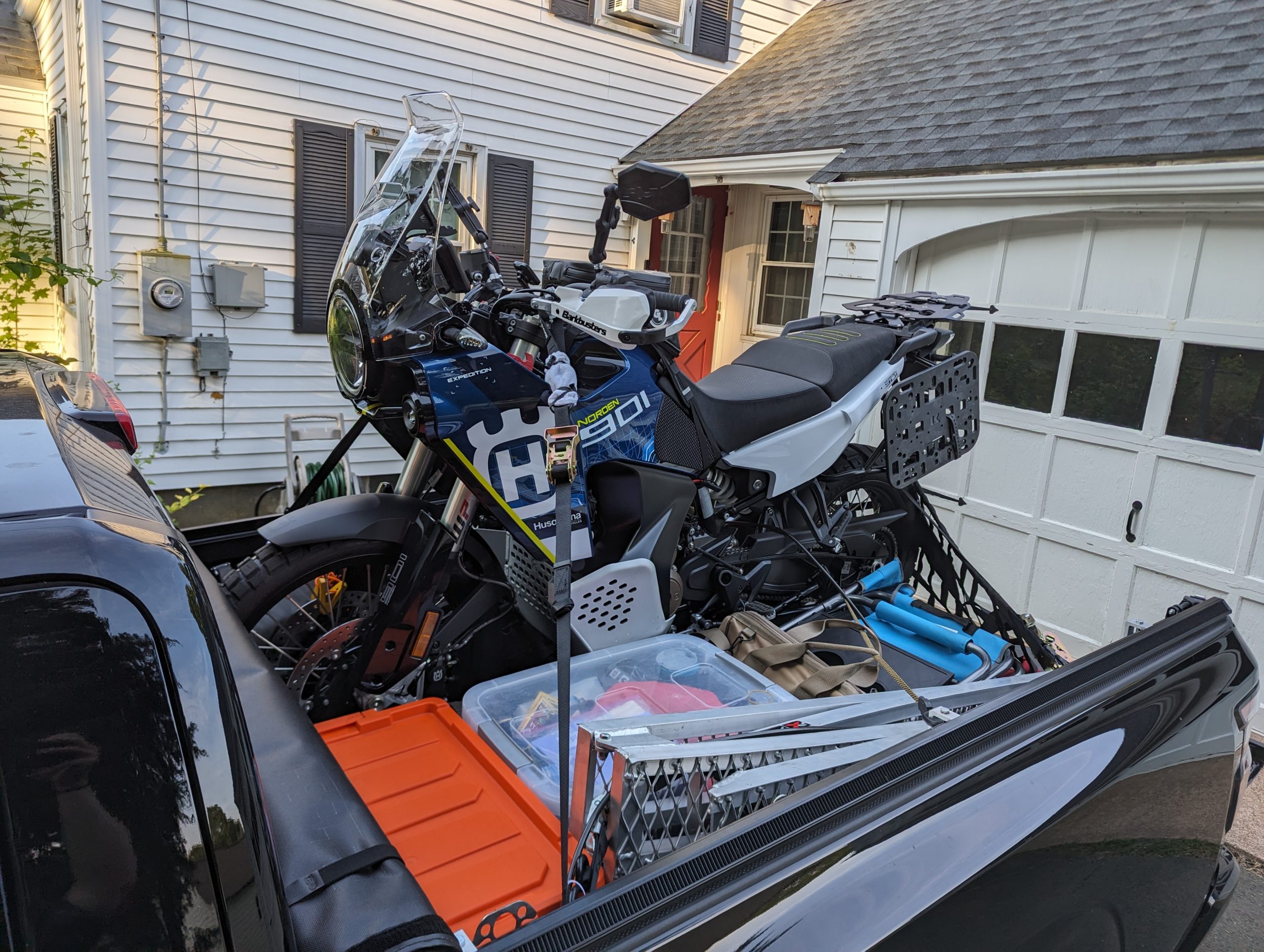 The trip started by loading the Norden, all my gear, and all the gear Tori and her mom would need for their trip into the back of the truck. Things were tighter than the would have been if we’d been able to use the hitch-carrier for the bike, but I figured it was definitely better safe than sorry after all of the trials of the week up to departure.