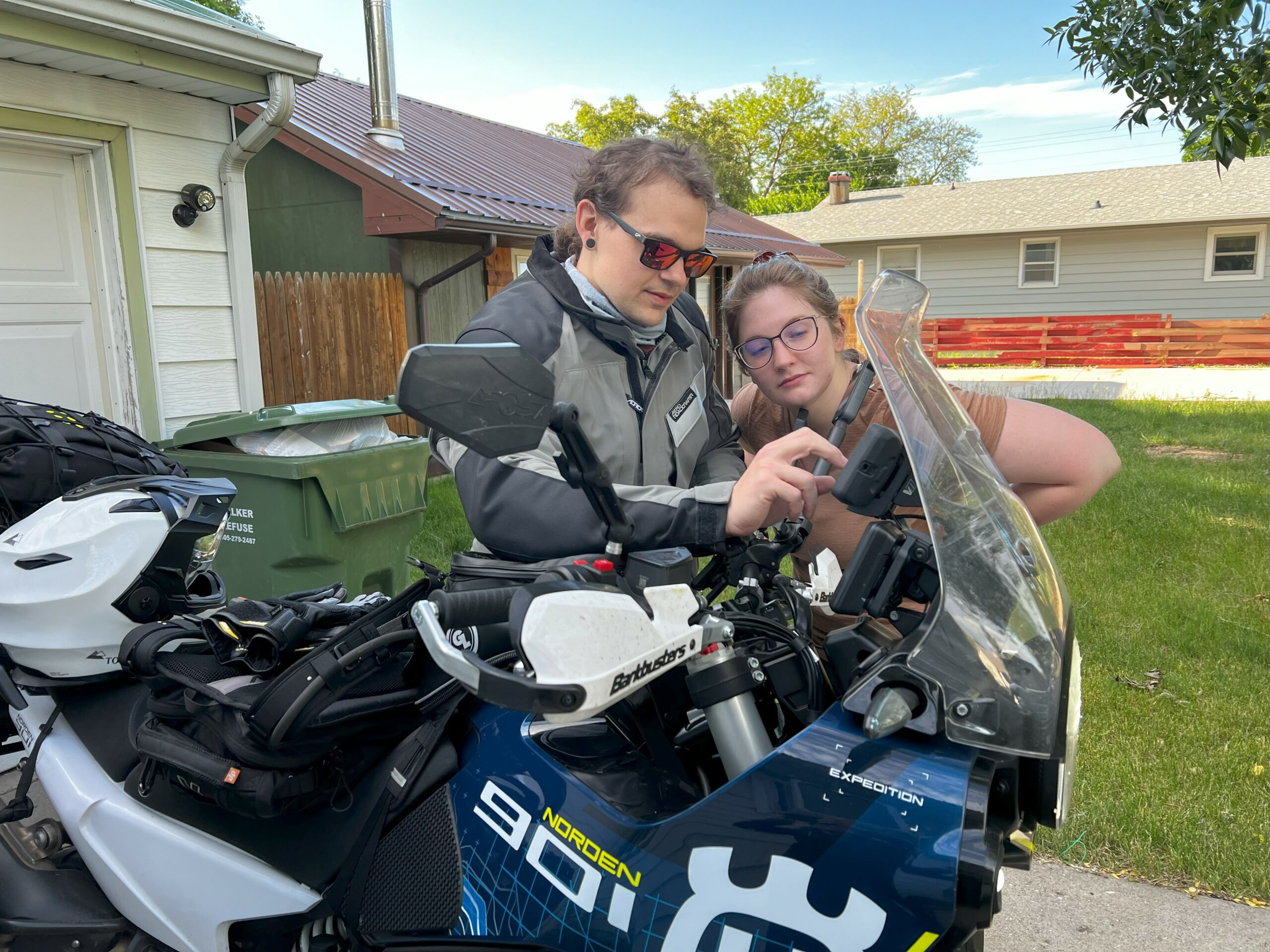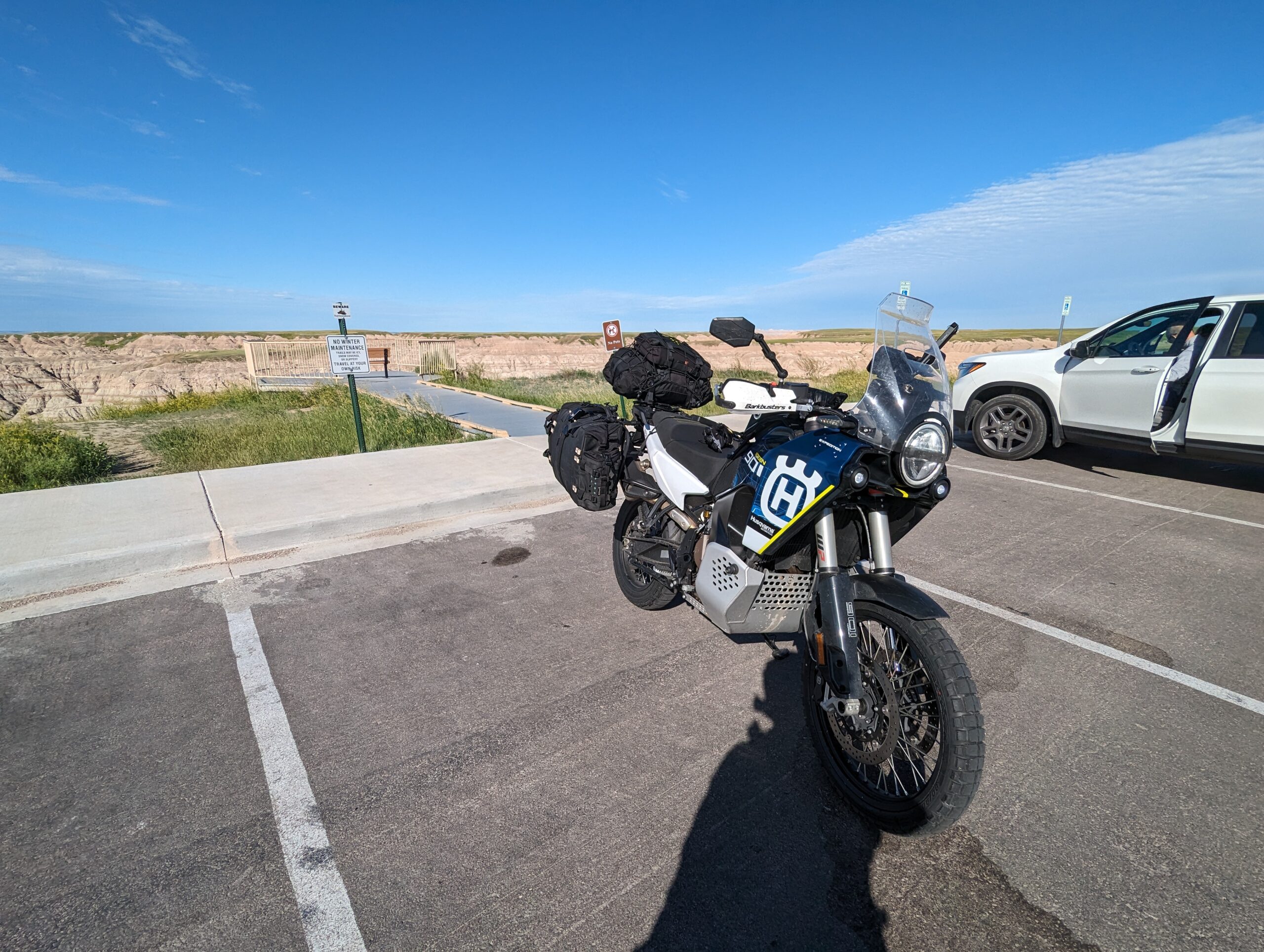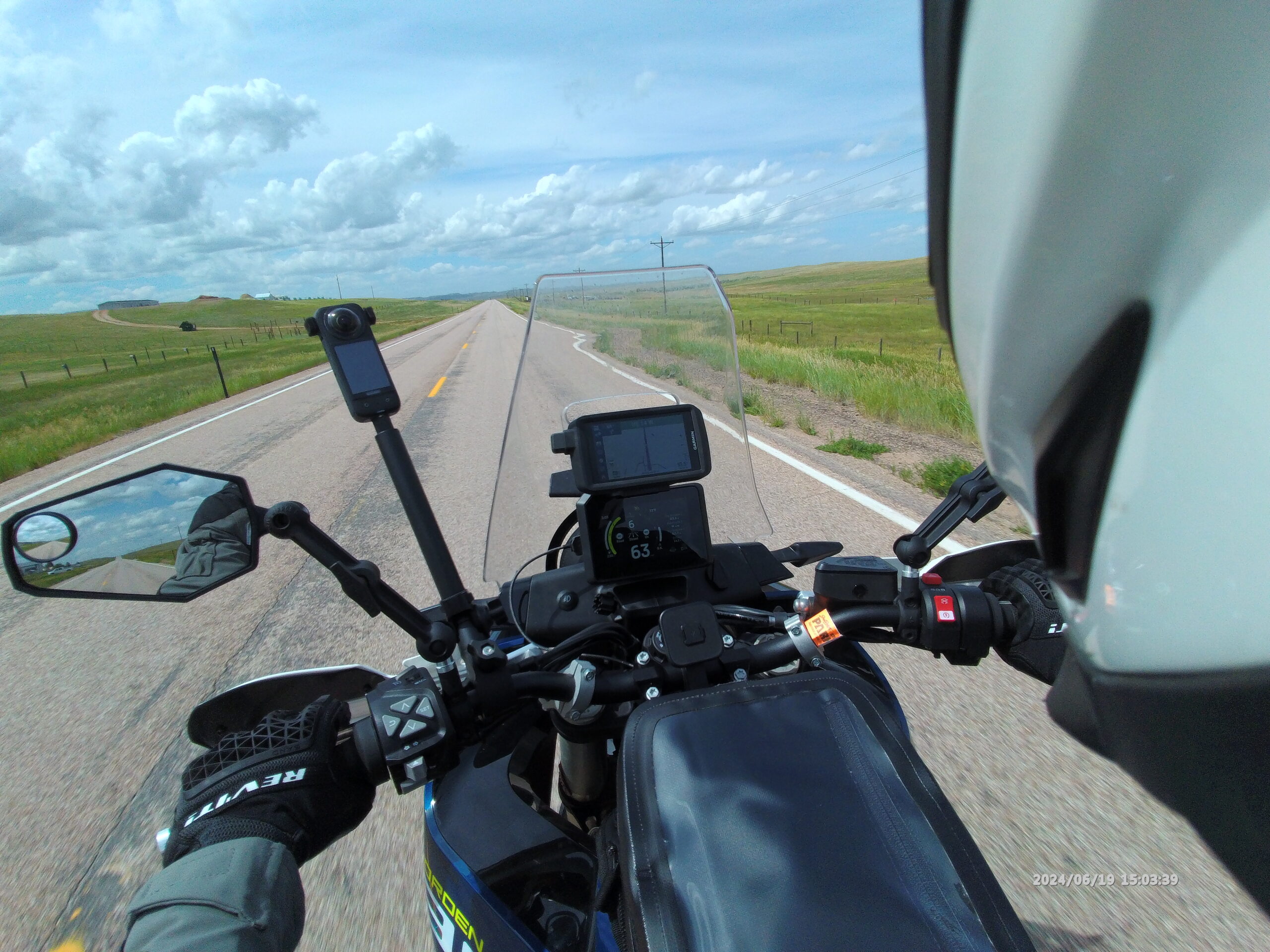 Today was officially the transition from the drive out to the proper trip. After an antsy night of prepping the bike, I got up before six and was out the door any ready to go around 8. Tori and Dorothy took off at about the same time for their Badlands camping trip, starting with a trip to Wall Drug. It was the first time I’d loaded everything up on the Norden, but it all seemed to come together well over the past few days.