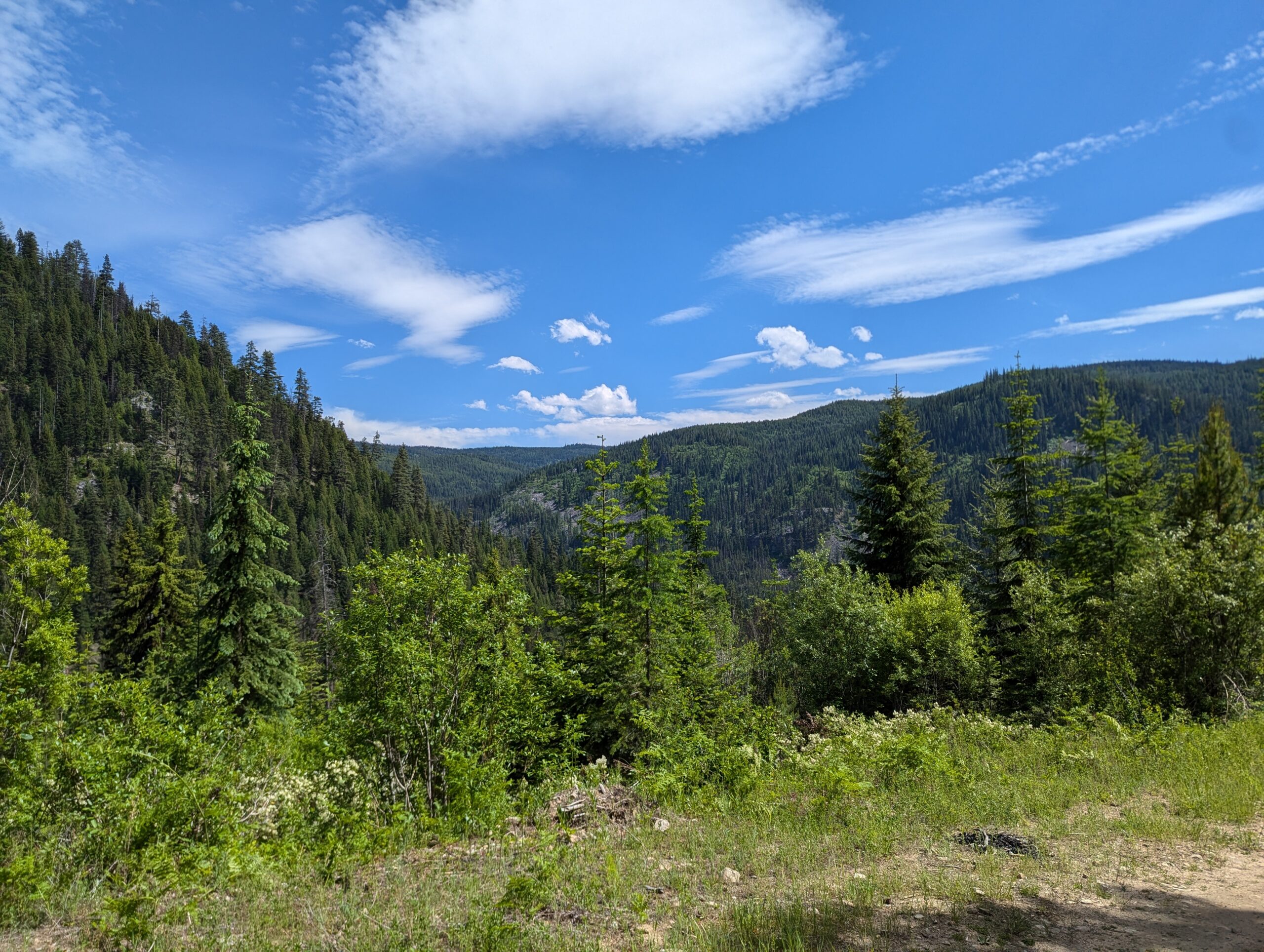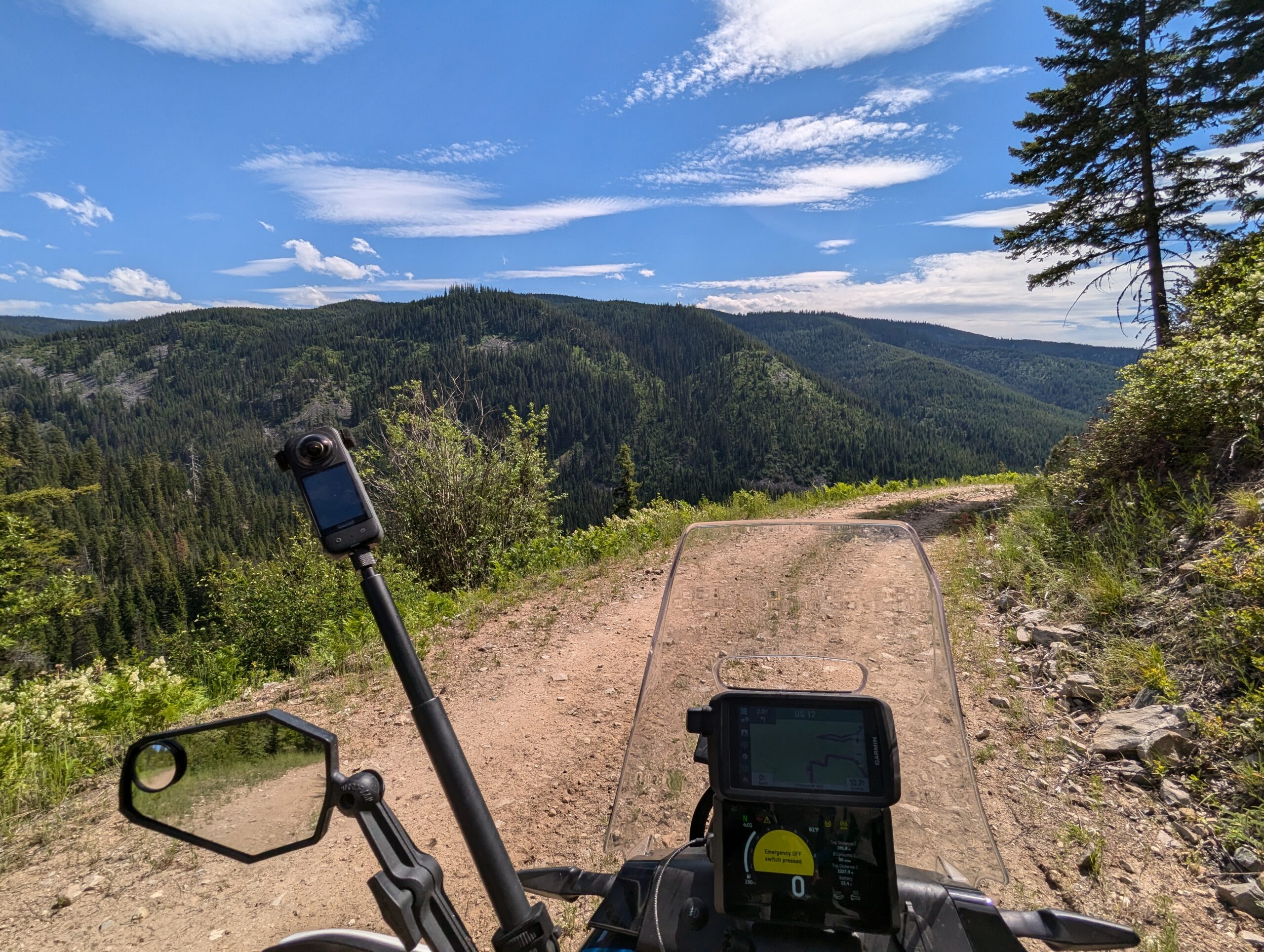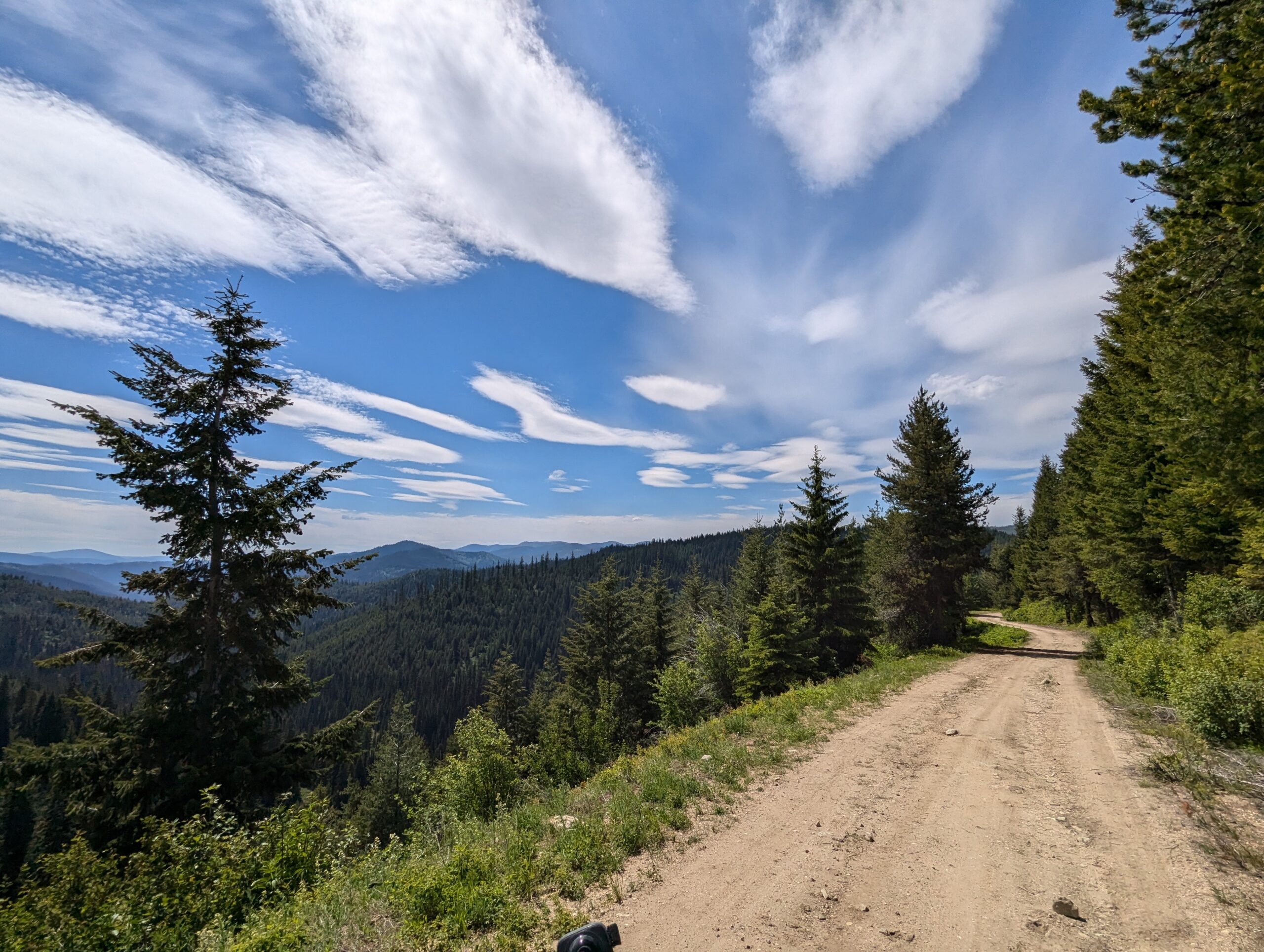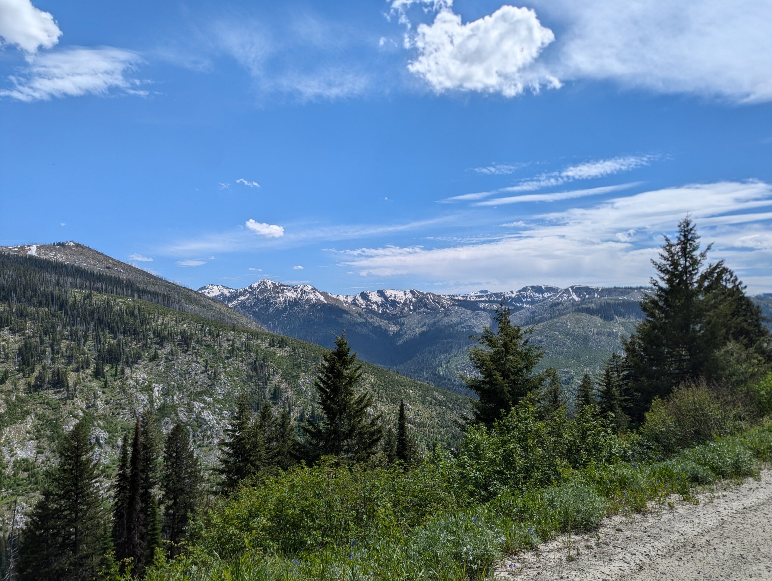 After the town of Lolo, I picked up my first section of the Idaho Backcountry Discovery Route. The route started off pretty easy, with tall pine trees lining the road as it slowly meandered back into the mountains. You could have told me I was in Vermont, New Hampshire, or northern Maine and I wouldn’t have known otherwise except for the occasional glimpse of snow-capped mountains in between the trees.