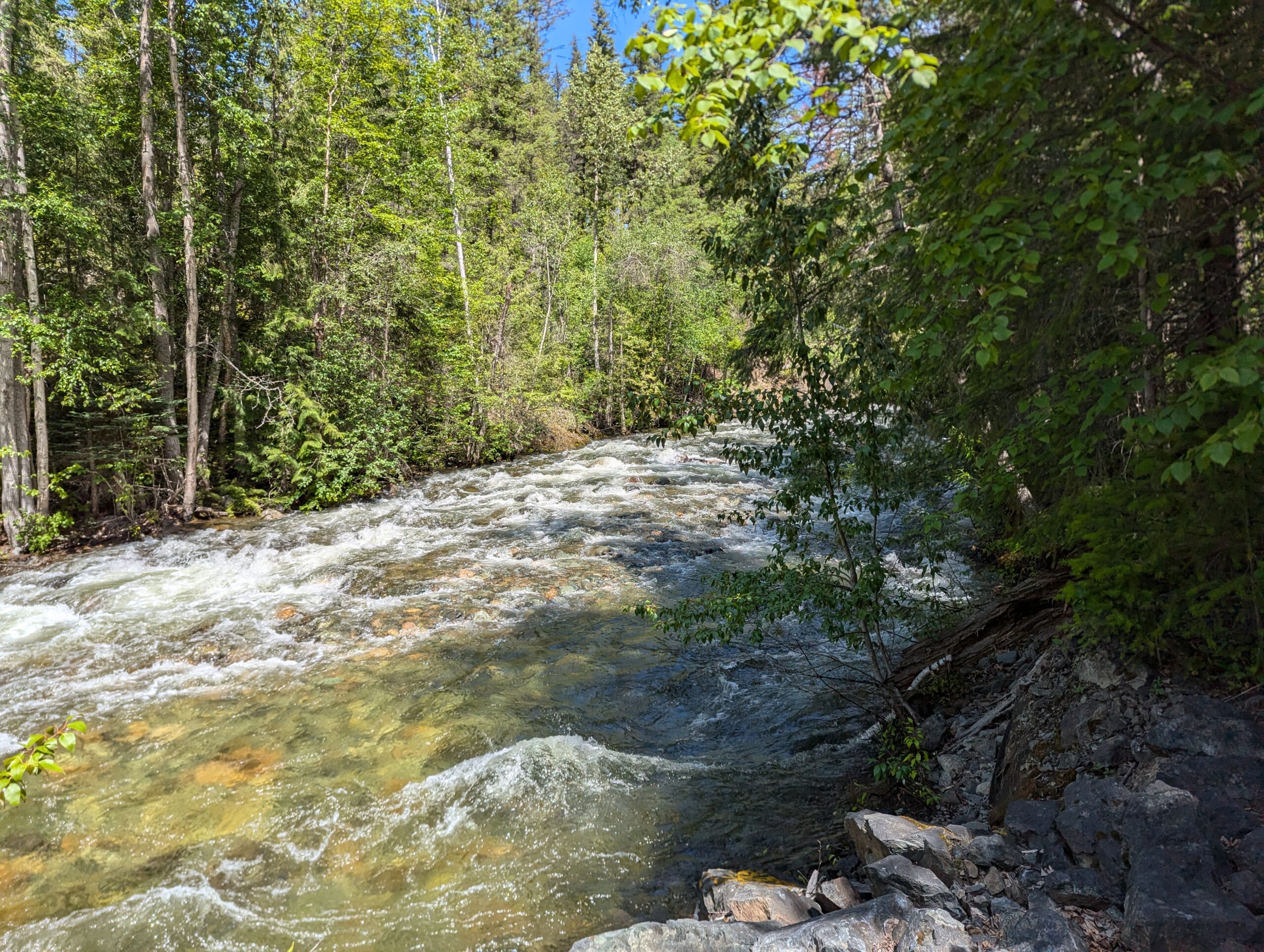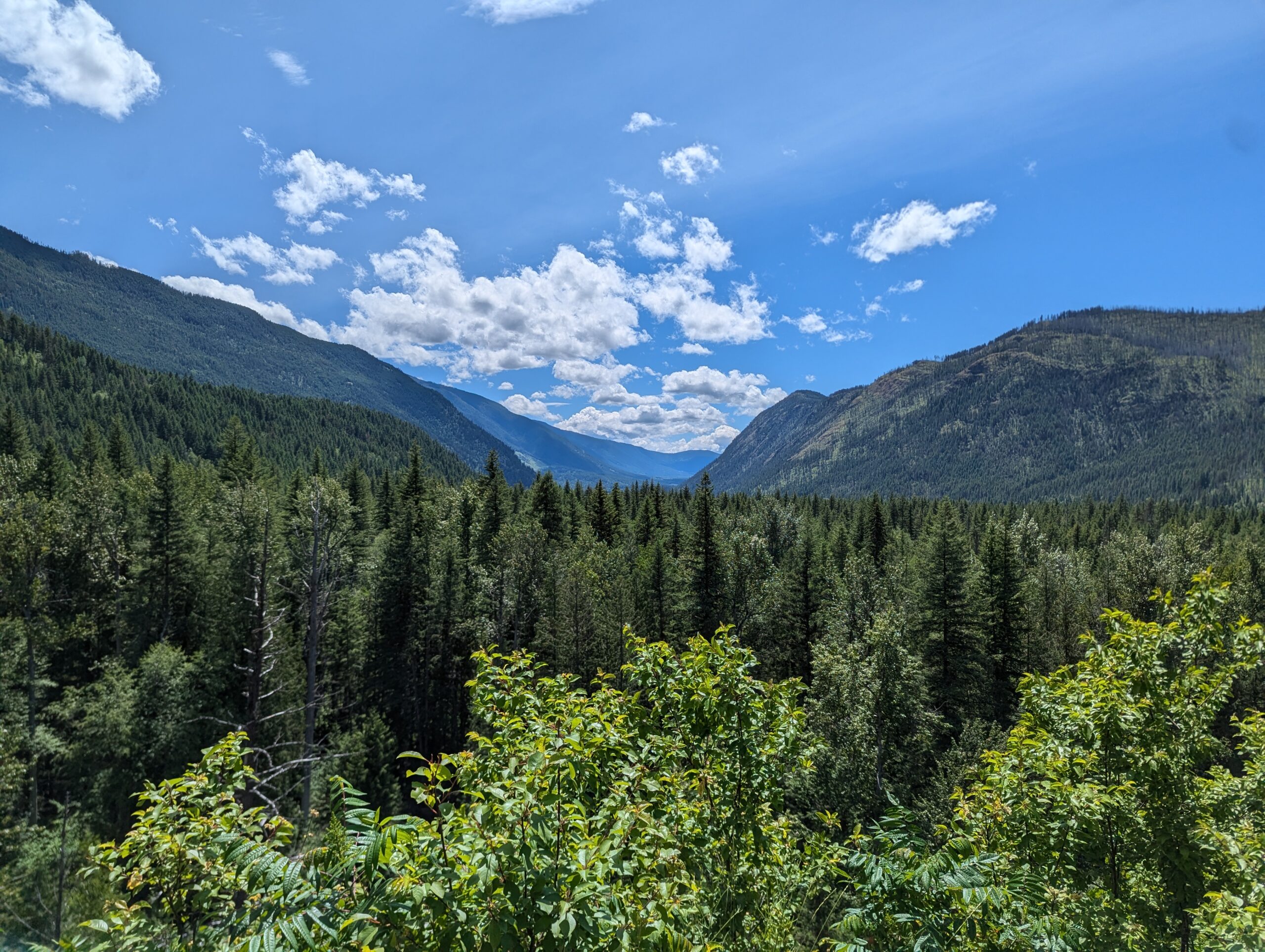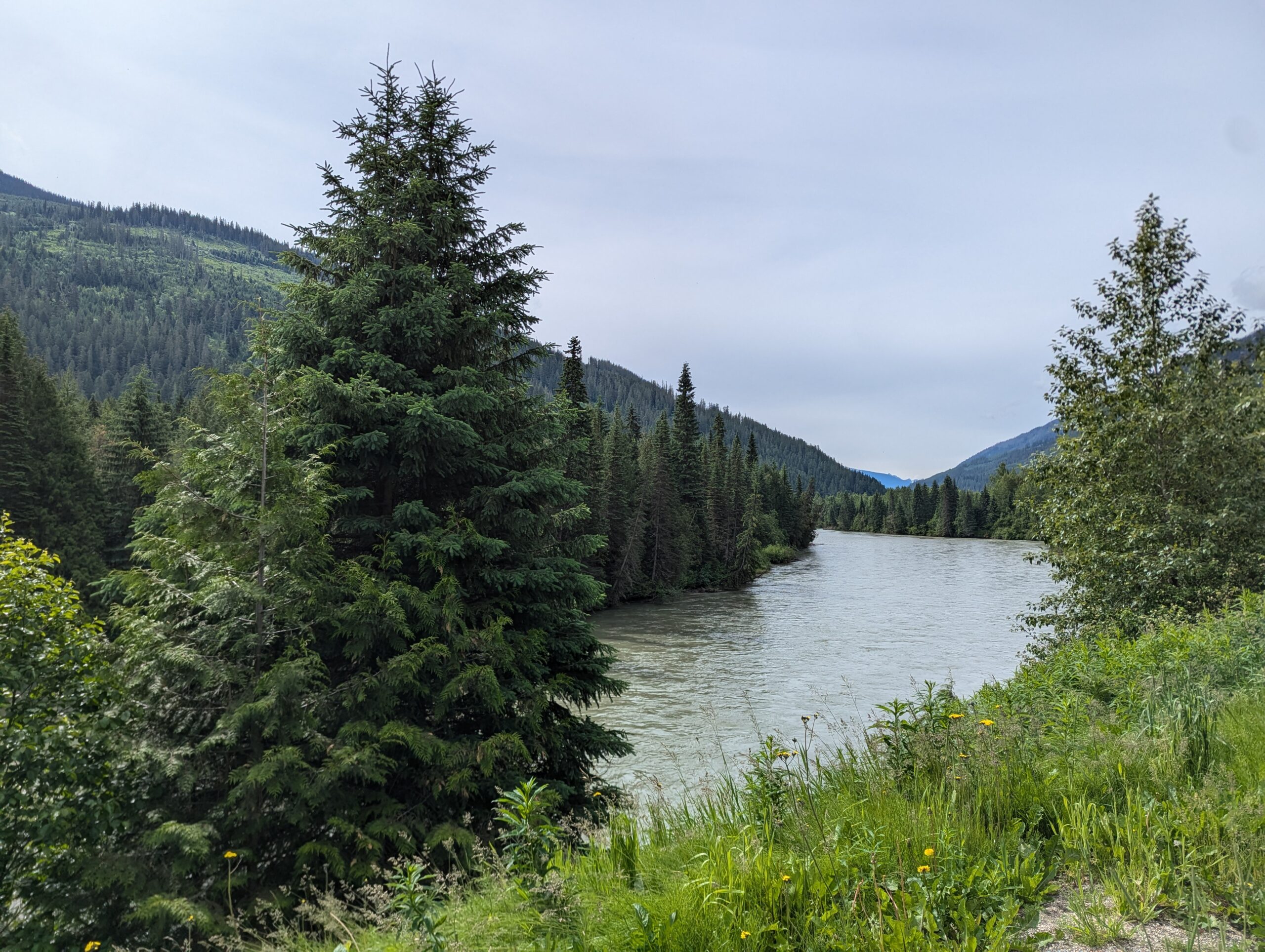 After I hit pavement I continued pretty much due South for an hour and a half. The views of the mountains were nice, but there were relatively few places to stop and appreciate them from anywhere but the road. I kept going until I hit my first forest service road in the interlakes region. The road wasn’t anything spectacular, and in a problem I would soon find is common in BC, most of the lake and riverfront areas were private property. I eventually found a nice little creek side spot that’s seen regular use as a campsite to have a snack and take a bit of a break.