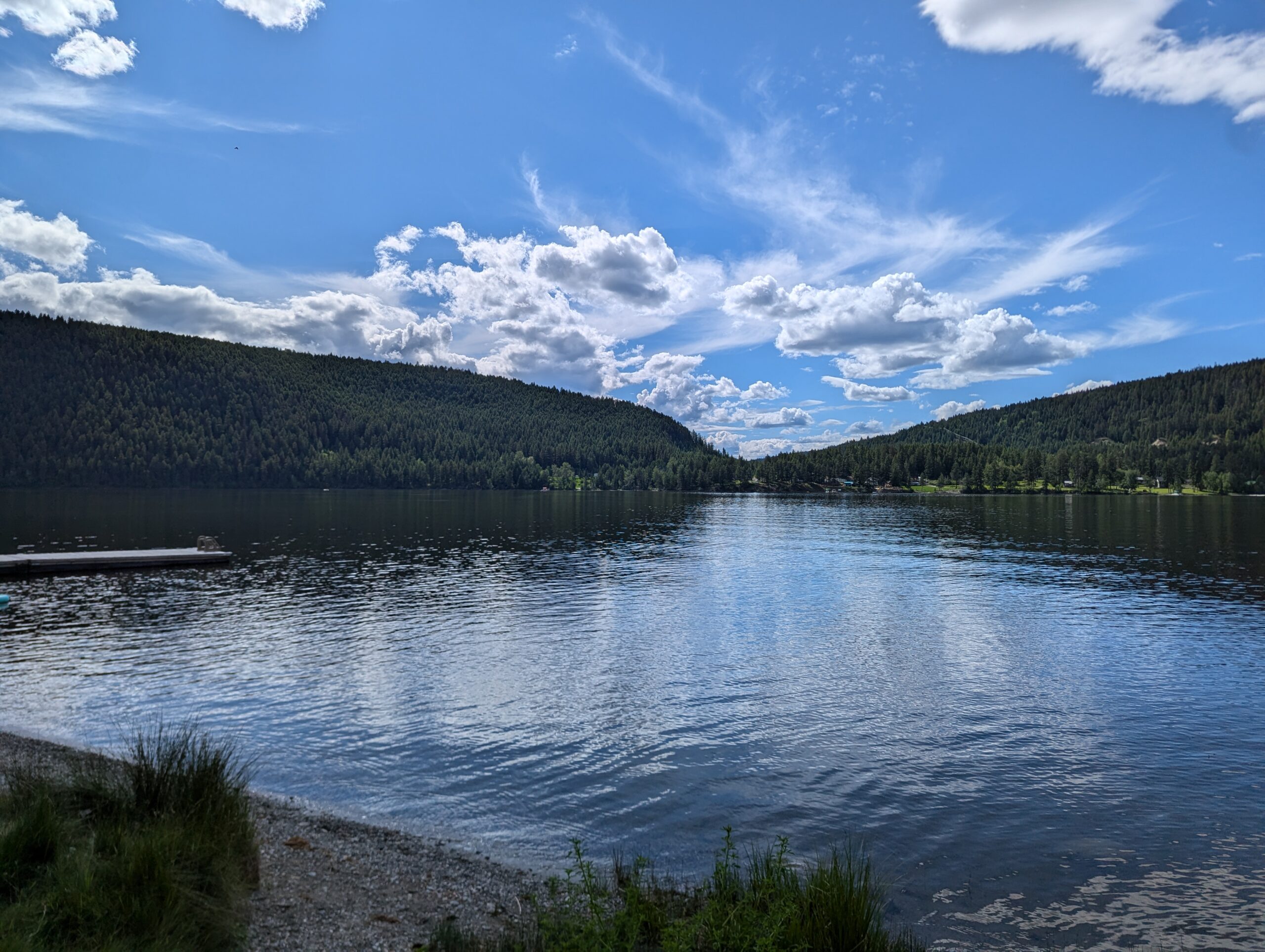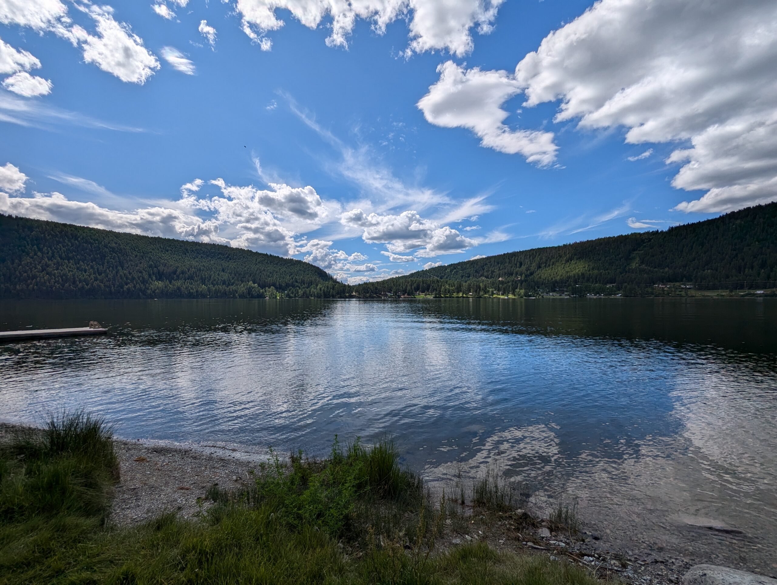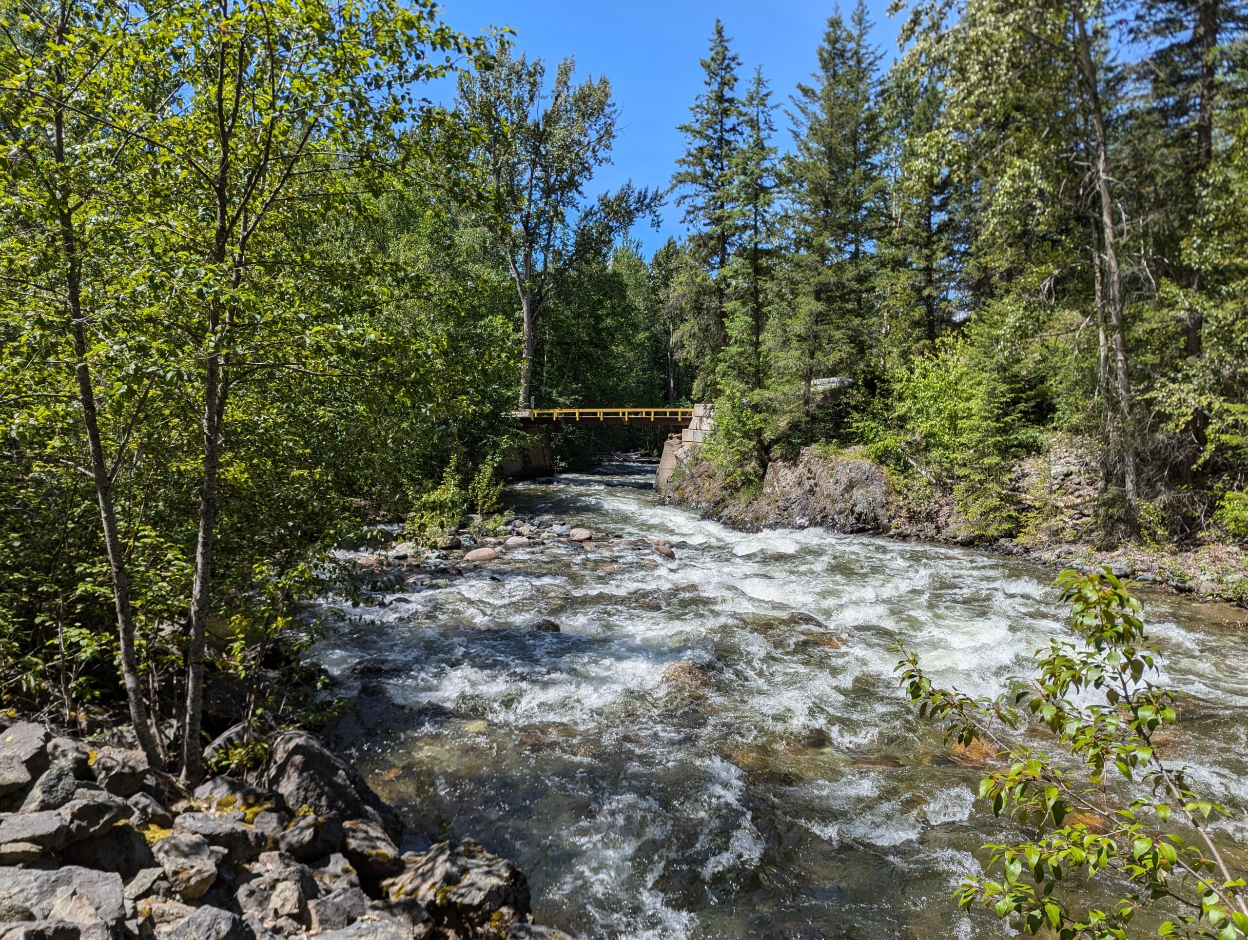 After I hit pavement I continued pretty much due South for an hour and a half. The views of the mountains were nice, but there were relatively few places to stop and appreciate them from anywhere but the road. I kept going until I hit my first forest service road in the interlakes region. The road wasn’t anything spectacular, and in a problem I would soon find is common in BC, most of the lake and riverfront areas were private property. I eventually found a nice little creek side spot that’s seen regular use as a campsite to have a snack and take a bit of a break.