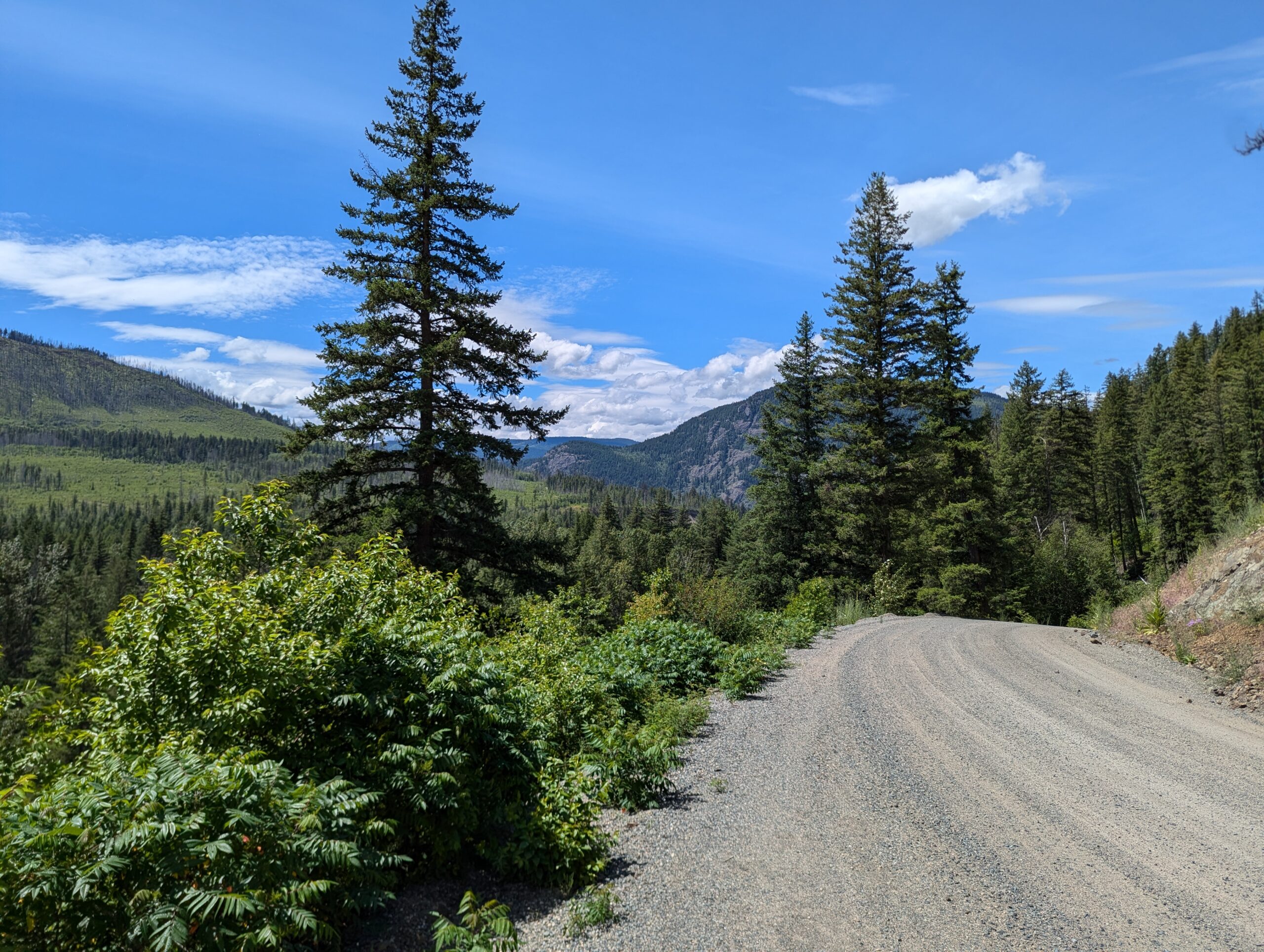 A direct route from Valemount (which was a bit further than I’d planned on going the day before) to my next stop in Sheridan Lake was only about 170 miles (274km) on main roads, so I spent some time the night before mapping out a route that used forest service and other unpaved roads where I could. Even still, it was likely to be a short day and I took my time in the morning again, setting off around 9:40am.