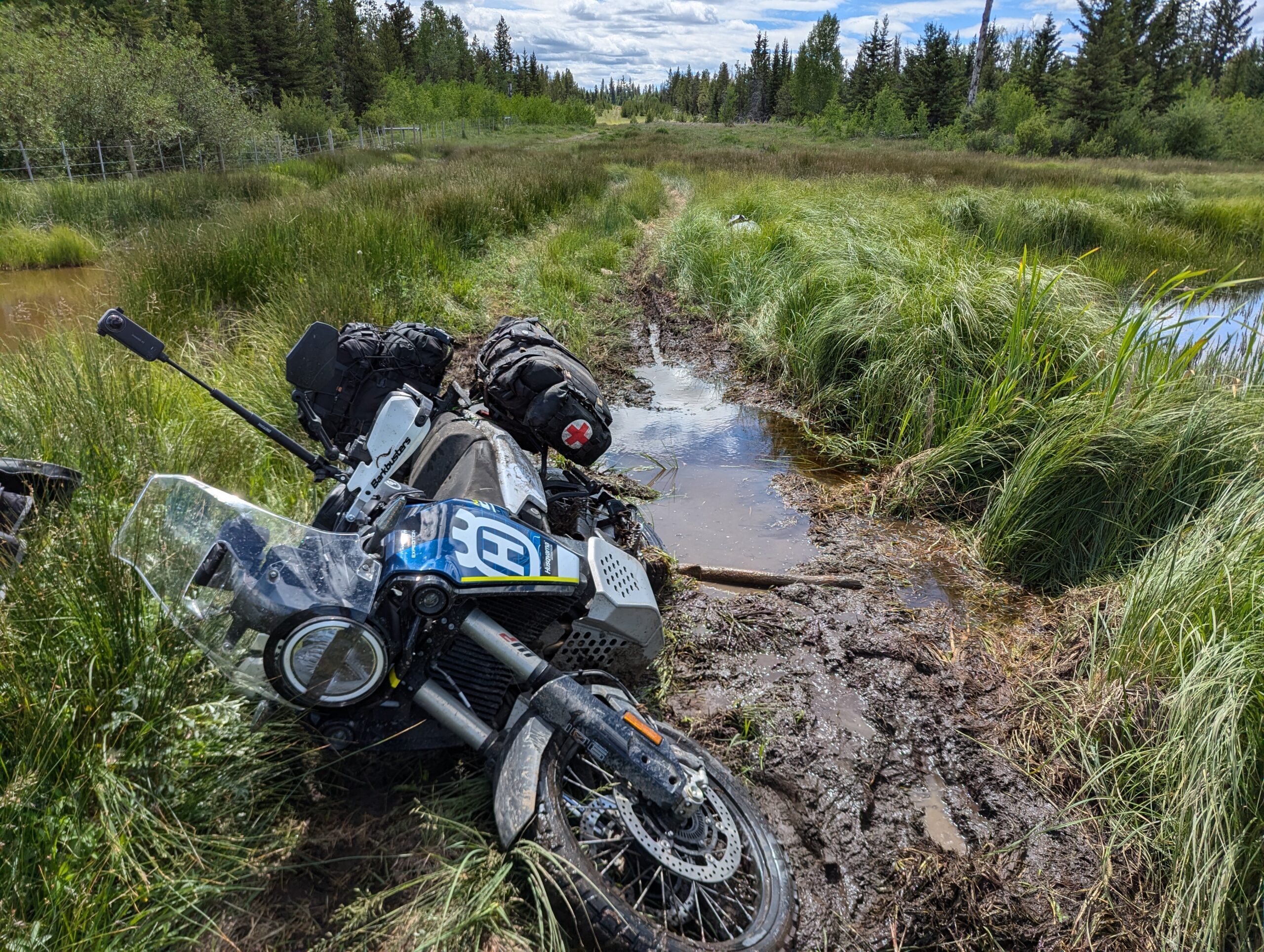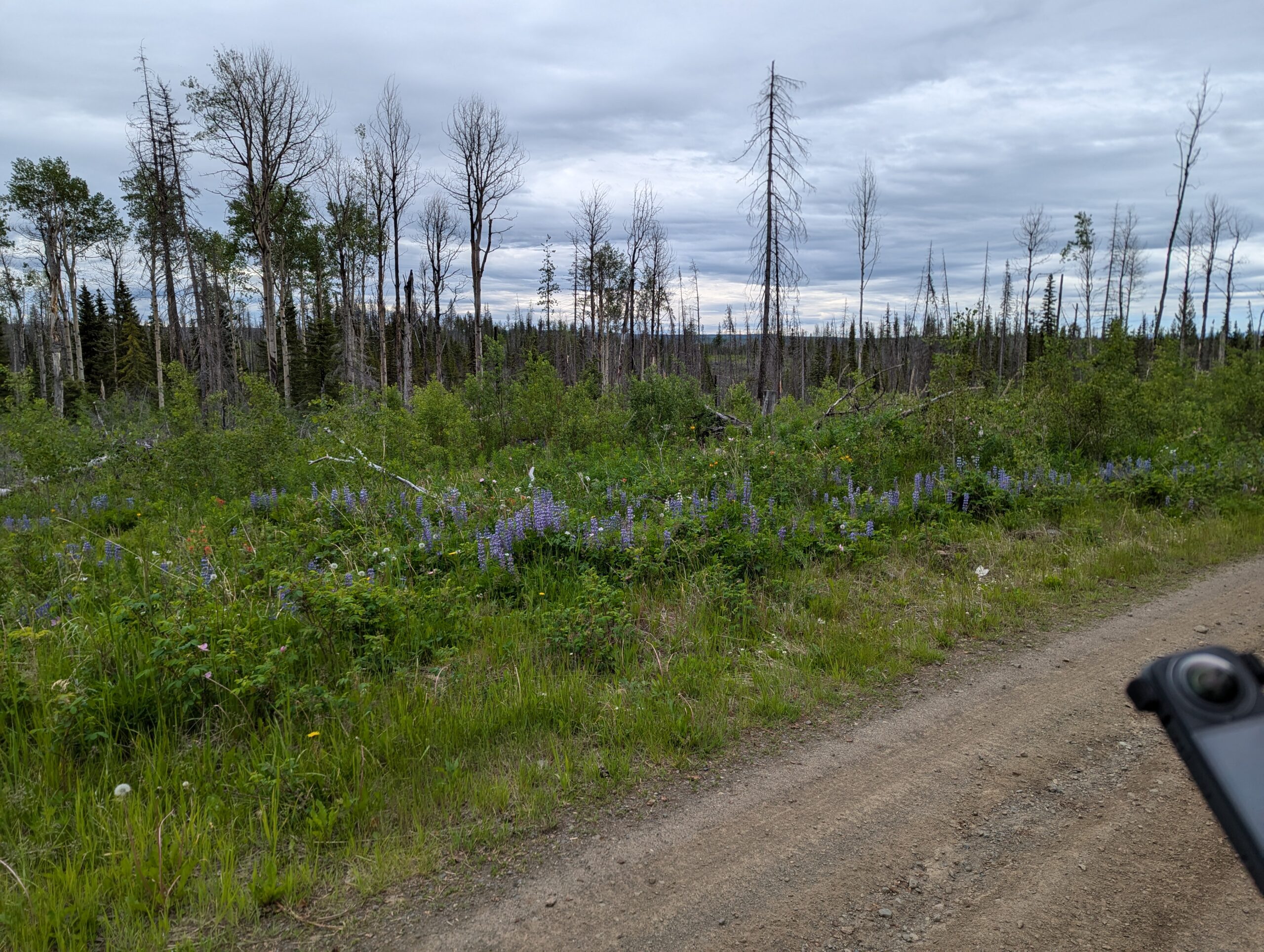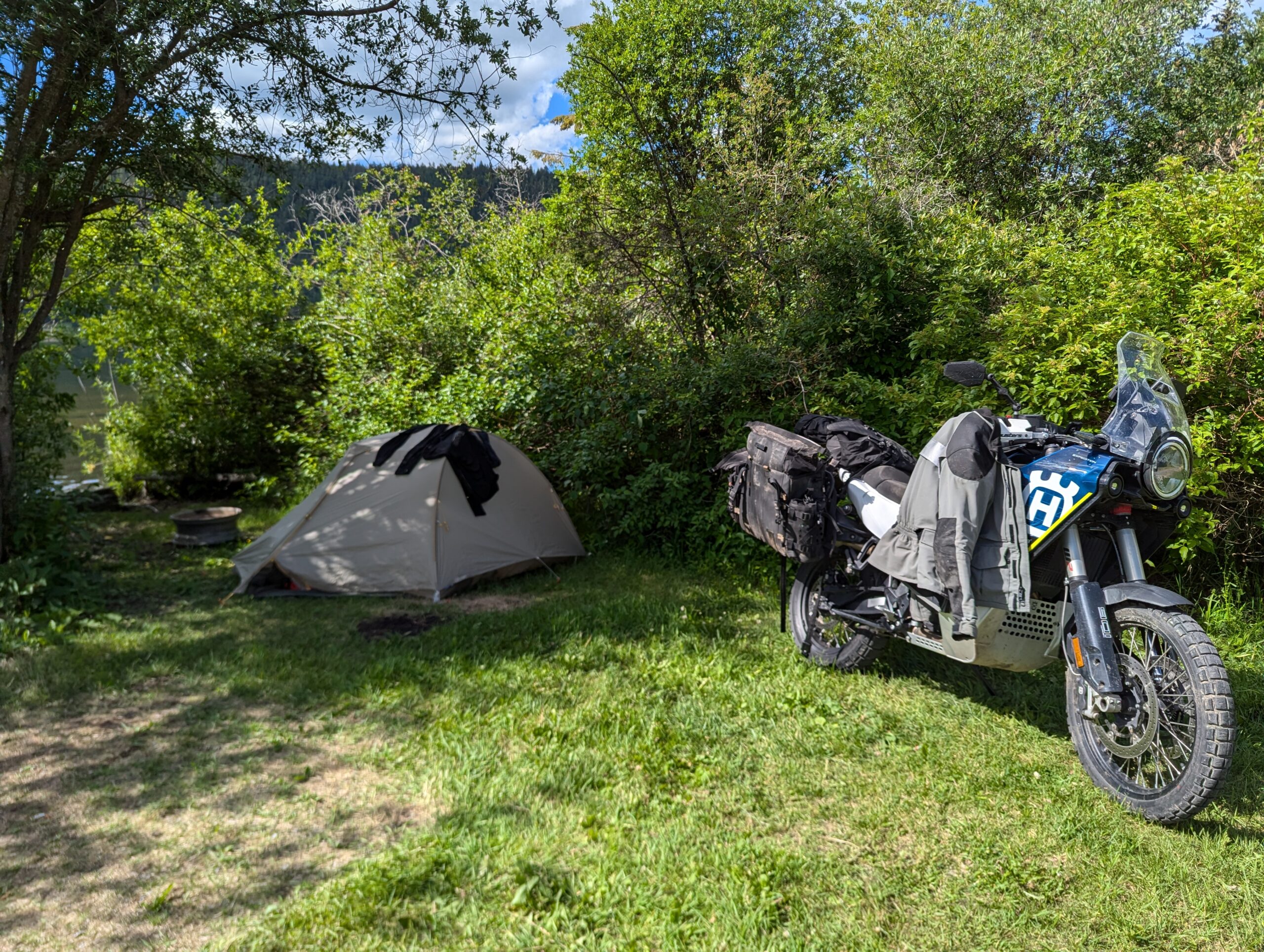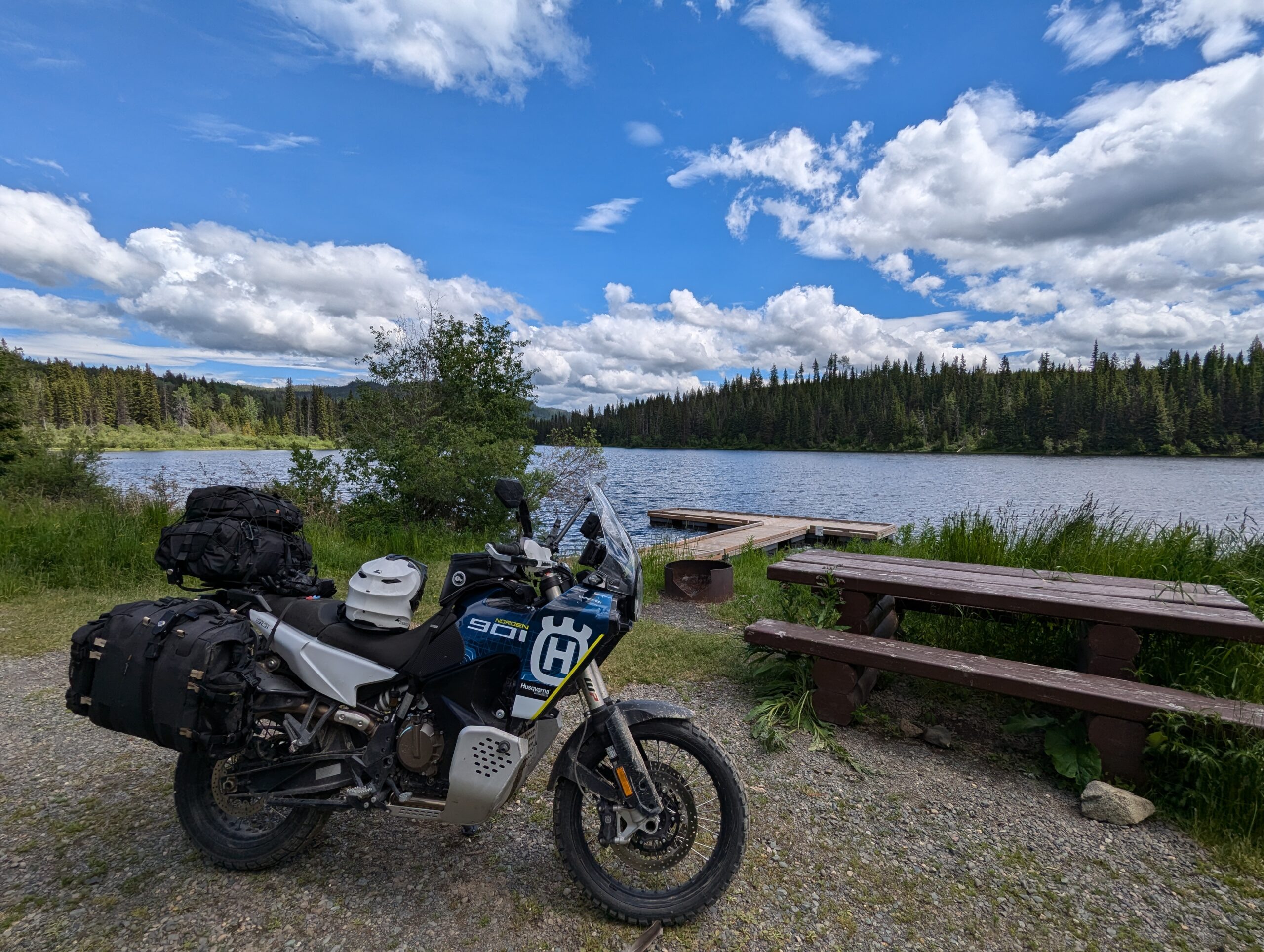 Other than a stop at a car wash to spray the very stinky bog mud off as much of the bike as I could, I kept it pretty much pinned until I got to camp and set up. Camp is a private campground mostly tailored for RVs, but the crowd has been pretty quiet so far and there’s 5G and wi-fi so I was able to get this written up. There’s a chance of rain overnight and some scattered thunderstorms starting tomorrow, but I’m hoping I can stay dry enough and pack up between rain systems to make it to my AirBNB and next rest day in Prince George tomorrow. It’s a short ride and should be pretty unremarkable, so I probably won’t do too much in terms of videos or photos.