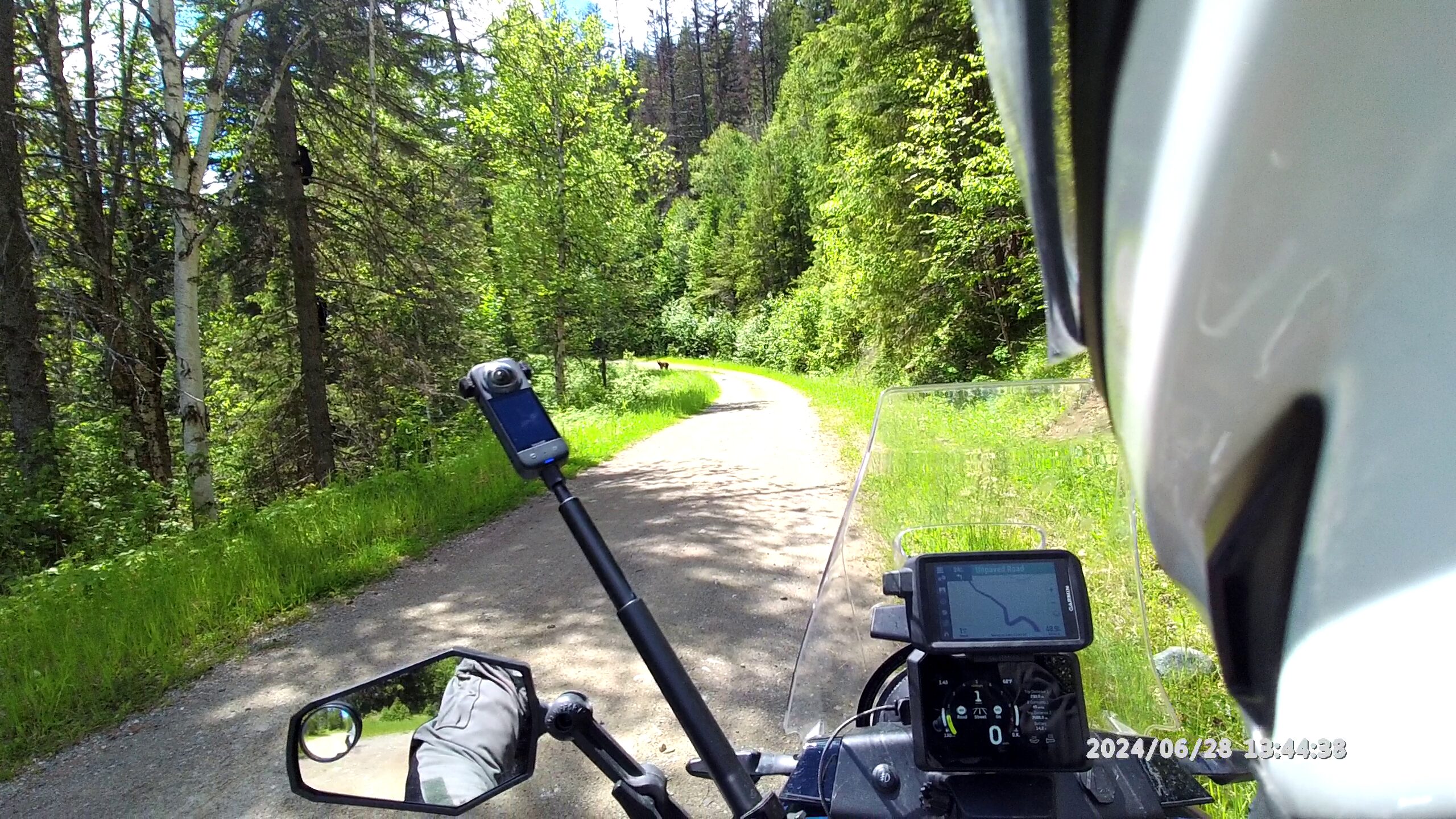 Being the interlakes district of BC, the routes naturally followed along and between a series of lakes as I continued south and west to the bottom corner of my planned diversion into the central plateau of British Columbia. For the most part the lakes were still bordered by private property, but I eventually found a marked & signed off-road route between two of the lakes and stopped for a coffee & protein bar after some fun off-roading and one or two water crossings on the trail.