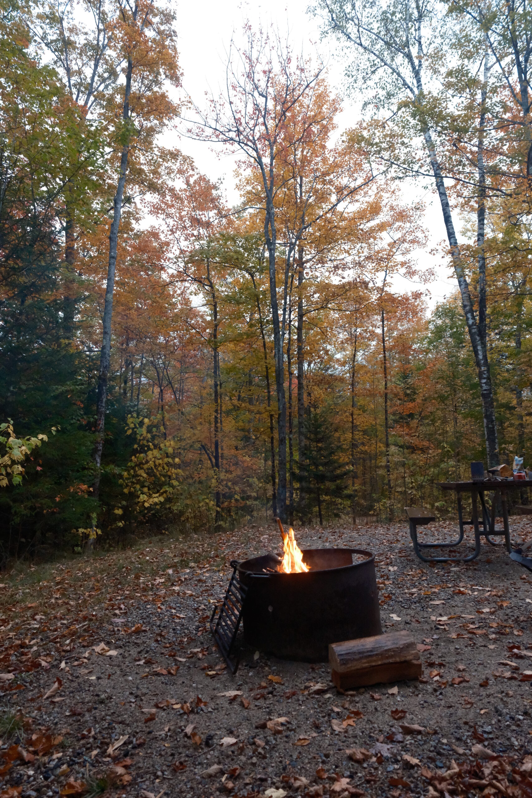 It was a bit of a rainy evening camping in Dolly Copp Campground in the White Mountain National Forest, but between the rain showers I was able to enjoy reading by the campfire and relaxing after a hectic month in a new job. I woke up early enough on Saturday to get to Mt. Washington before what I expected would be heavy fall traffic, but I was turned away at the gate due to heavy winds on the mountain. The weather just never seems to cooperate for me when I’m in the area.