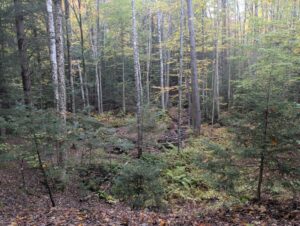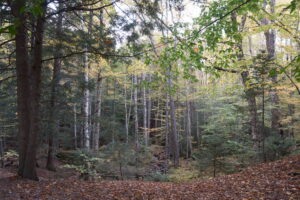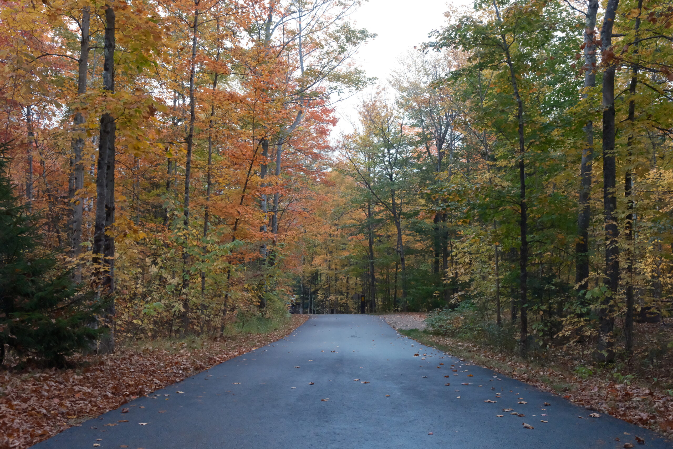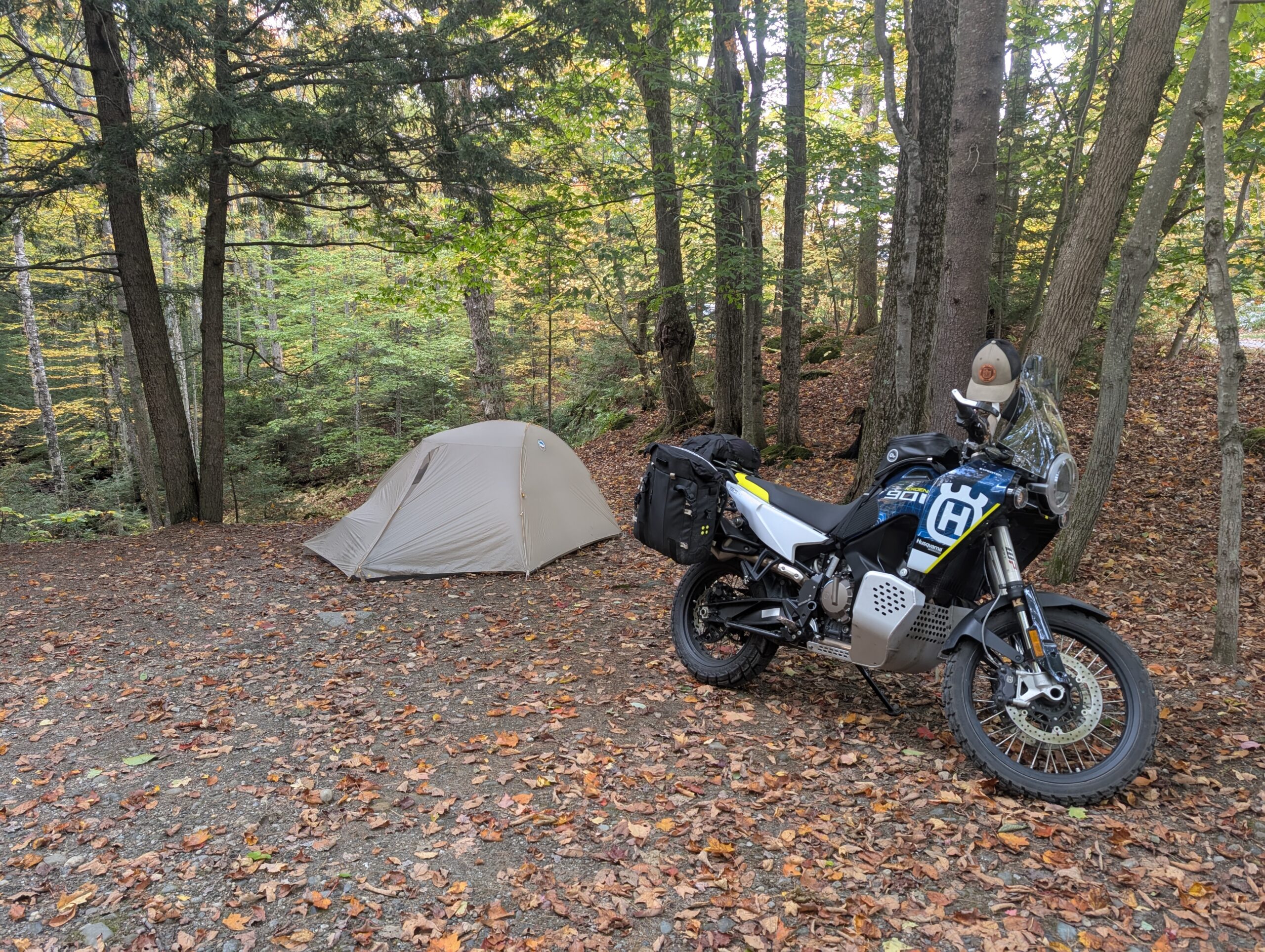 I backtracked to the national forest to pick up the BDR. The sections in NH is pretty easy and flowy, with Sandwich Notch Road probably being the highlight. The optional section through the Bartlett Experimental Forest is interesting, as well, and on this trip it was the only time I crossed paths with other adventure riders out enjoying the fall day. There were also a shocking number of off-leash dogs with no recall, which really feels like a bad combination in an area that’s as popular with dual sport riders and overlanders as it is.