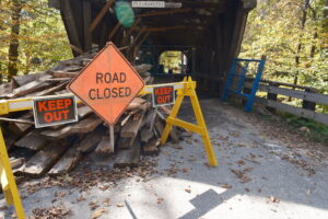 Tori and I have spent two weekends hiking and exploring around Sandwich — first on our quest to visit every town named Sandwich and later for our mini-moon, so I made a point to stop in town for lunch and ride by the cabin we stayed in for both. Unfortunately, the covered bridge to the cabin was undergoing some much needed repairs, so I continued on my way through Sandwich Range Wilderness on the BDR.